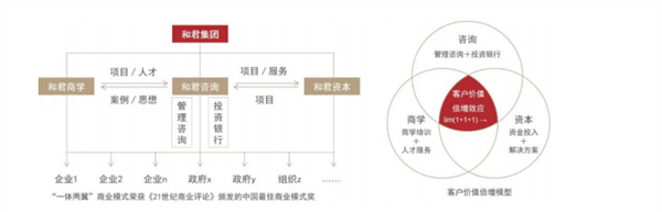 和君咨询创建于 2000 年春,实缴注册资本 1 亿,先后在北京、上海、深圳成立总部,在赣南森林深处建立和君小镇。和君集团的三大业务包括咨询、资本和商学,三大业务形成一体两翼的格局:以咨询业务为主体、以资本业务和商学业务为两翼,通过“咨询+资本+人才”的综合服务实现客户价值倍增。和君集团以“为客户提供有实效的思想、知识和方案”为使命,在“人生如莲”、“三度修炼”及“两个满意度是生命线”的企业文化下努力成为世界智业里受人尊敬的传世品牌,并力求在世界商学流派中在就一个中国学派。