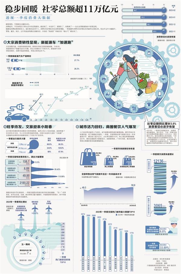 (原标题:透视一季度消费大数据:稳步回暖 社零总额超11万亿元)