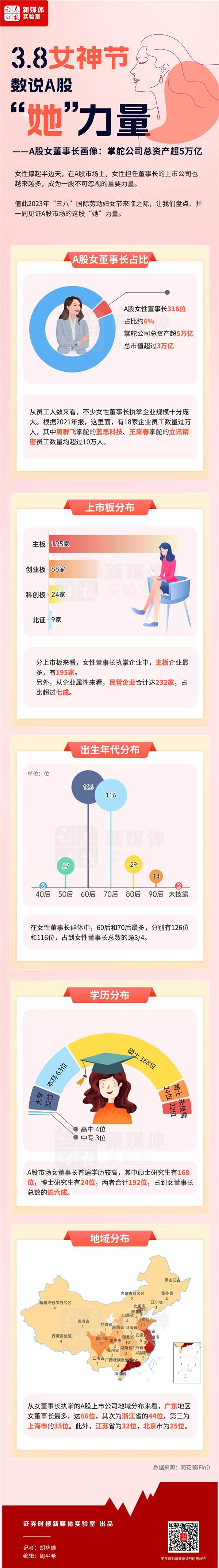 (原标题:3.8女神节,数说A股“她”力量——A股女董事长群体画像:掌舵公司总资产超5万亿)