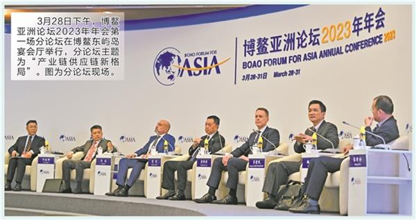 报告预计,2023年,在世界经济放缓和全球化遭遇碎片化风险的大背景下,亚洲经济体加权实际国内生产总值(GDP)增长率为4.5%,较2022年的4.2%有所提升,整体复苏步伐继续推进,区域生产、贸易、投资一体化和金融融合进程将加快。当日举行的产业链供应链新格局分论坛上,与会嘉宾认为,国际社会应共同努力协调,维持全球产业链供应链的稳定。从全球产业链供应链角度看,中国将持续成为全球的制造枢纽。