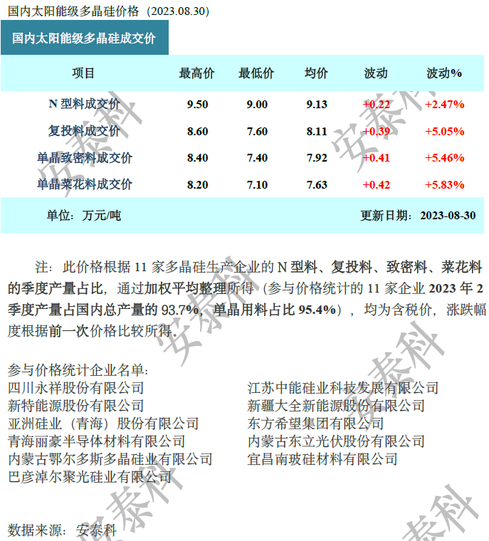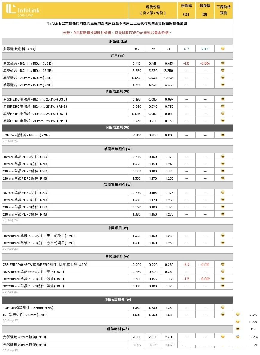 当前厂家更多关注在9月份下游的供需变化,若电池片排产维持高档,并N型产能投放节奏加快,以N型为首的硅片供应仍将不富裕,硅片价格或将得到支撑再续上行。