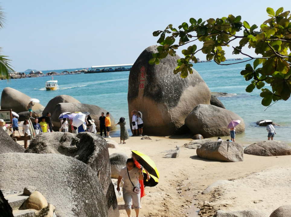 下午是大东海天然海滨浴场,其也是免费开放的4A级景区。蓝天、碧海、青山、绿椰、白沙滩,“水暖沙白滩平”使得大东海闻名海内外。大东海有专门划出来的游泳区域,游客可以租一个救生圈、买个手机防水袋去划水,体验漂浮起来的感觉,释放平日里工作的压力。