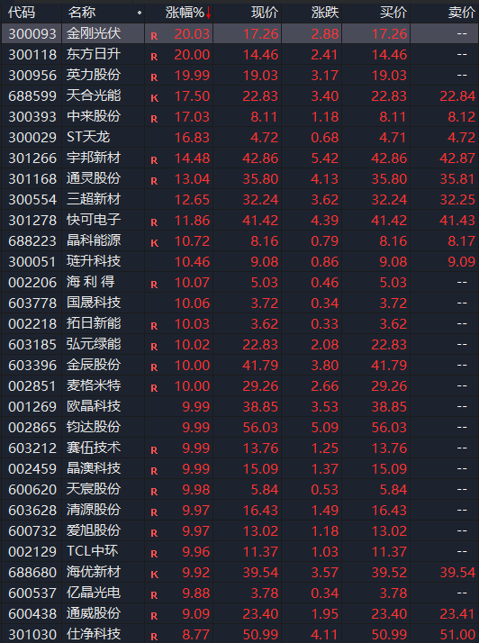 光伏概念暴涨