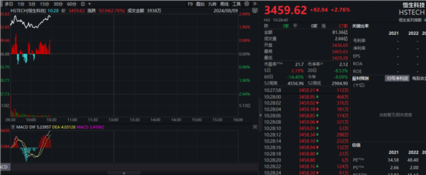 恒生科技指数表现更为强劲,截至发稿,盘中涨幅一度接近3%。