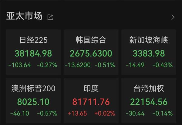 早间,亚太市场全线下跌。