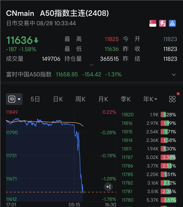 A50指数跳水超1%