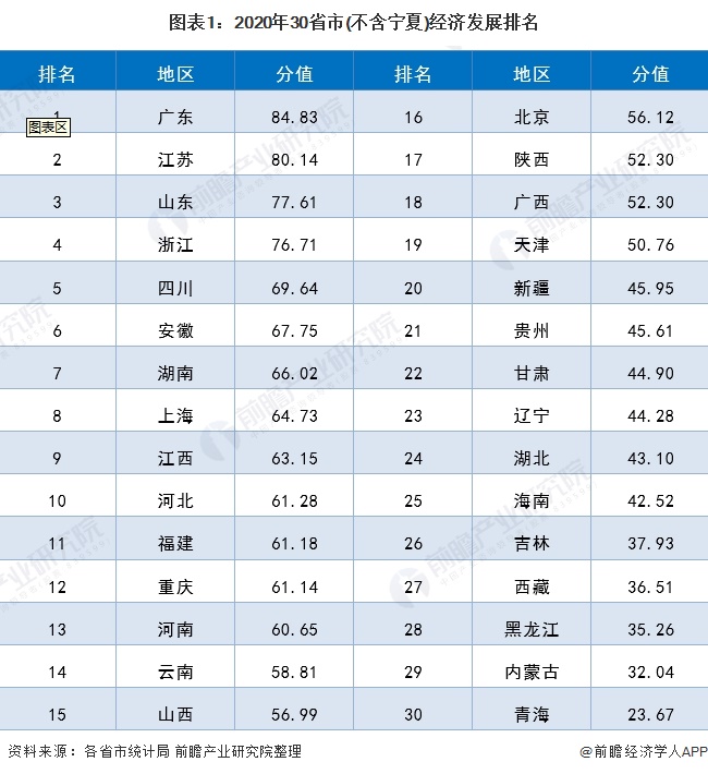各省市经济发展排名:广东、江苏、山东位居前三,湖北因疫情影响排名靠后