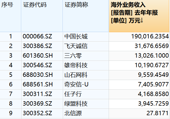 (2023年实现海外收入的网络安全企业 图片来源:Wind)
