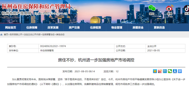 8月5日,杭州发布楼市新政。新政主要在购房资格和新房销售两个方面进行调控。