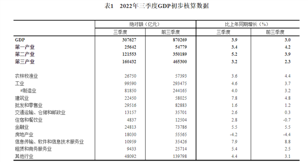 三季度GDP同比增长3.9%,工业发展快速回升