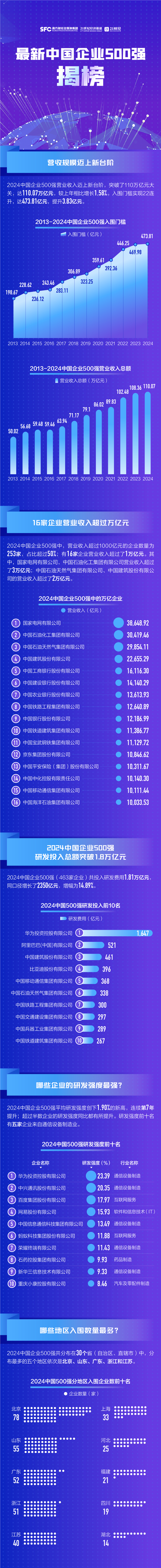 (原标题:中国企业哪家强?中国企业500强榜单:总体营业收入突破110万亿元大关(附完整榜单))