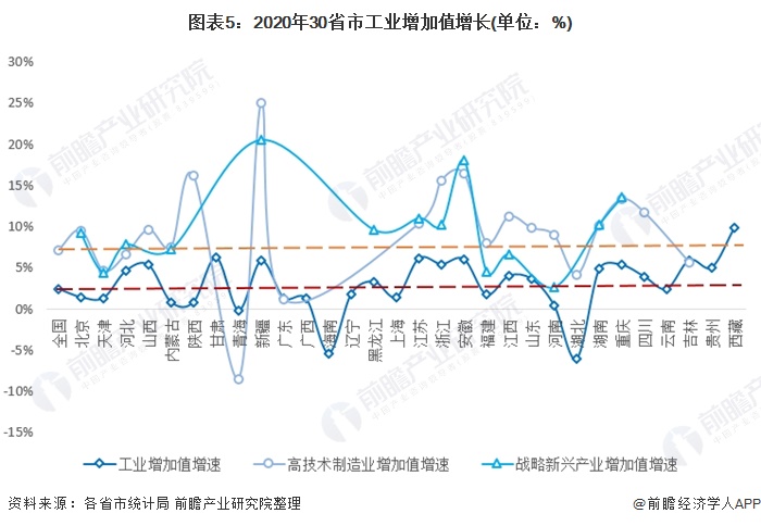 注:宁夏数据尚未公布,河北、内蒙古、江西、安徽统计的为高新技术产业增加值增速